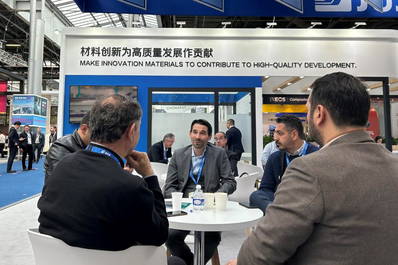 President of China Jushi and Chairman and CEO of Jushi Group Zhang Yuqiang, leading a sales team, was exchanging views and insights with global partners at JEC World 2024 — the globally renounced composite materials expo. The expo this year was open from 5-7 March at the Paris Nord Villepinte Exhibition Centre.