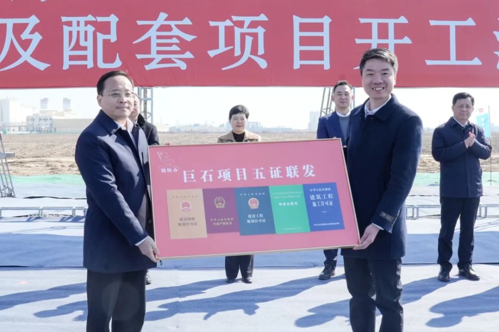 Mayor Gu Kun presented the "Five Certificates" to Jushi. Cao Guorong, Vice President of China Jushi, chaired the ceremony.