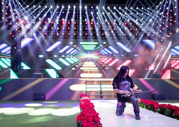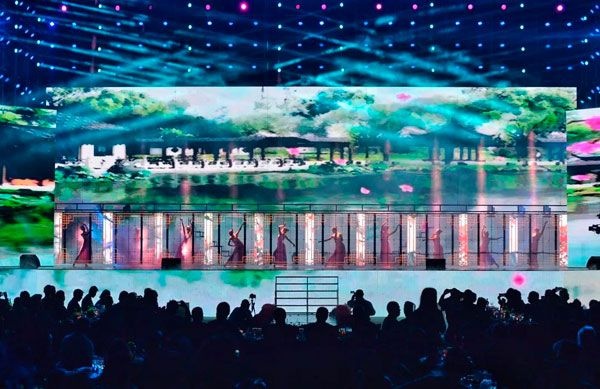 震撼的燈光秀,使人仿佛進(jìn)入一個(gè)璀璨流彩絢麗的時(shí)空。首次出現(xiàn)在巨石年會(huì)晚會(huì)現(xiàn)場的威亞,結(jié)合了打鼓和燈光的元素,視覺效果令人眼前一亮。