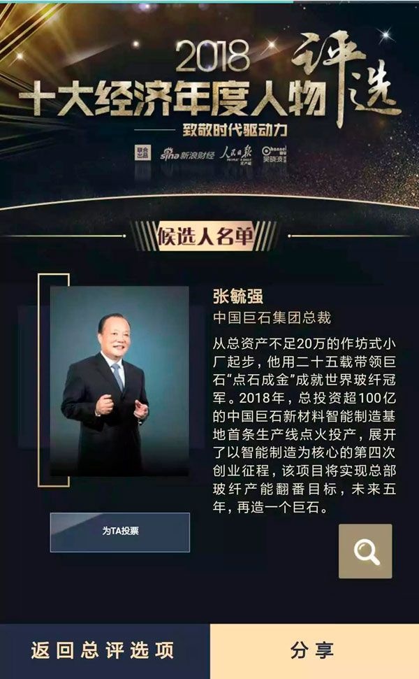 張毓強(qiáng)入圍“2018十大經(jīng)濟(jì)年度人物評選”候選名單,快來為他投票啦!