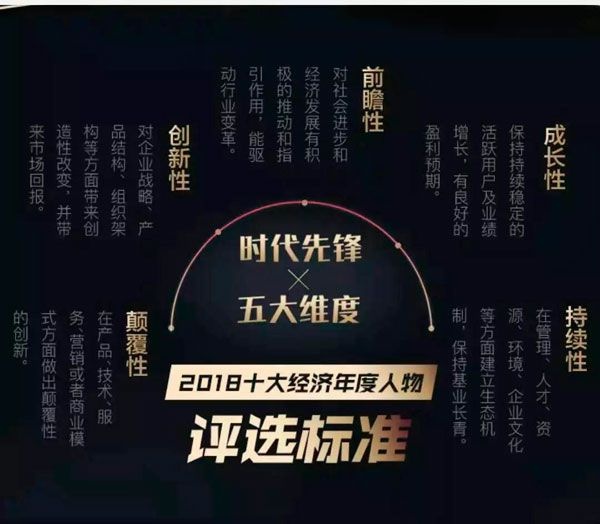 “十大經(jīng)濟(jì)年度人物評選”已經(jīng)通過了媒體評審團(tuán)、機(jī)構(gòu)評審團(tuán)及組委會的長期調(diào)研。今年的評選主題為“致敬時代驅(qū)動力”,評選標(biāo)準(zhǔn)仍然保持了“創(chuàng)新性、顛覆性、前瞻性、成長性、持續(xù)性”等五個維度