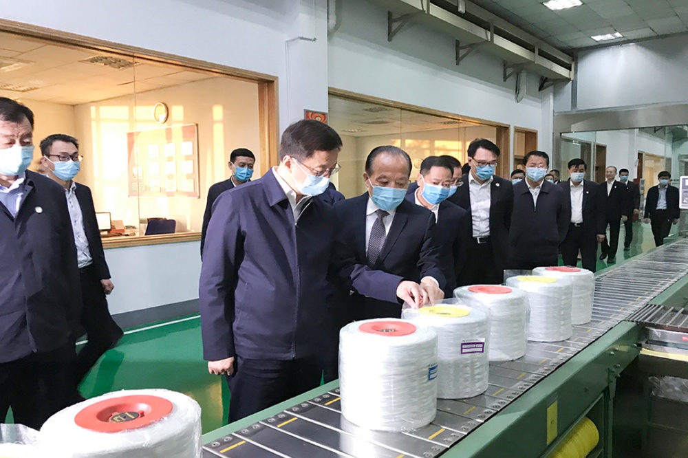 韓正來到九江公司35萬噸玻璃纖維池窯拉絲生產(chǎn)線參觀,并聽取張毓強(qiáng)關(guān)于企業(yè)發(fā)展歷程、國際化戰(zhàn)略、科技創(chuàng)新、環(huán)境保護(hù)和疫情期間經(jīng)營調(diào)整等方面的匯報。在企業(yè)沙盤前,韓正詳細(xì)了解巨石九江公司的發(fā)展歷程。張毓強(qiáng)介紹,巨石是全球最大的玻璃纖維生產(chǎn)企業(yè),1993年成立于浙江桐鄉(xiāng),2000年開始布局中部地區(qū),收購了九江市老國有企業(yè)——九江玻璃纖維廠,經(jīng)過二十年的發(fā)展,通過體制機(jī)制改革、整廠搬遷、技改升級等手段,把巨石九江公司建設(shè)成為我國中部地區(qū)最大的玻璃纖維生產(chǎn)基地,并帶動了九江當(dāng)?shù)匦虏牧袭a(chǎn)業(yè)鏈的集聚和發(fā)展。巨石響應(yīng)國家“一帶一路”倡議,提出了“三地五洲”的發(fā)展戰(zhàn)略布局,除了已在國內(nèi)東、中、西三地布局之外,在埃及和美國也建有大型玻纖生產(chǎn)基地。
