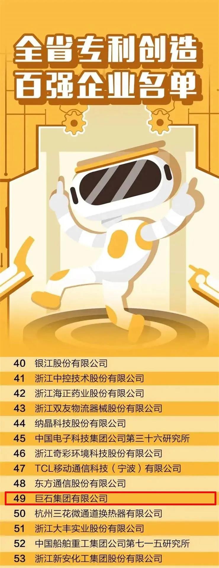 巨石再次榮登浙江省創(chuàng)造力百強(qiáng)企業(yè)榜單