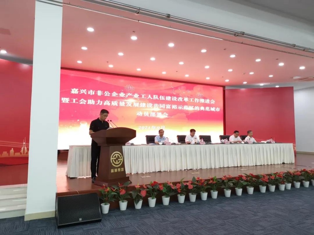 巨石集團在嘉興市工會助力高質(zhì)量發(fā)展建設(shè)共同富裕示范區(qū)的典范城市動員部署會上作表態(tài)發(fā)言