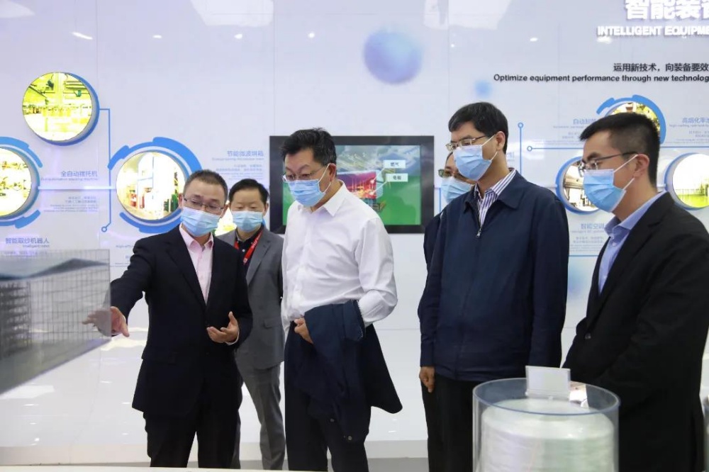 調(diào)研組一行在丁成車的陪同下,先后參觀了智能制造基地、智能展示中心,詳細了解企業(yè)發(fā)展歷程、智能制造建設、玻璃纖維運用領域。