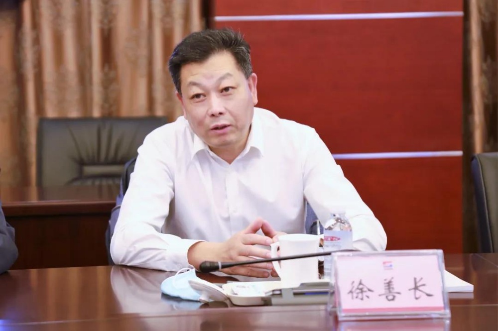 座談交流環(huán)節(jié),張毓強向徐善長匯報了中國巨石在混合所有制改革方面的成效和經(jīng)驗。