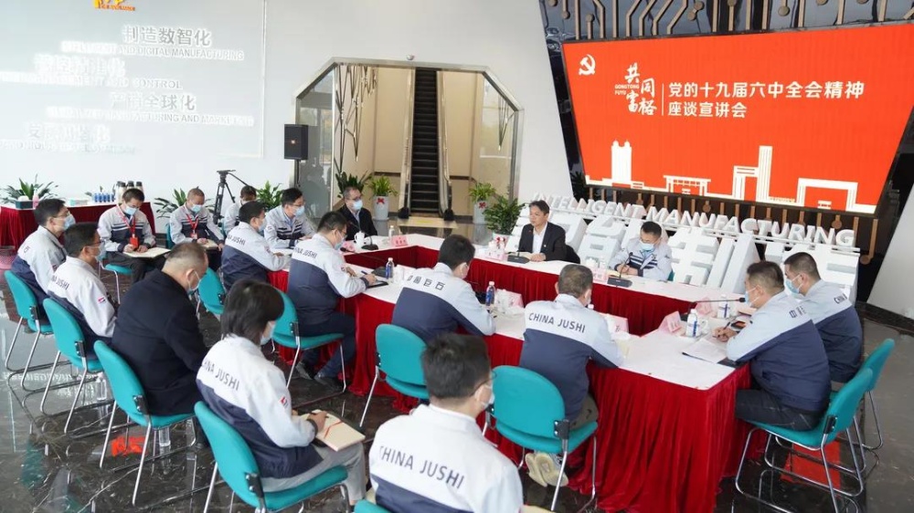 桐鄉(xiāng)市委副書記、代市長王堅(jiān)到中國巨石宣講黨的十九屆六中全會(huì)精神
