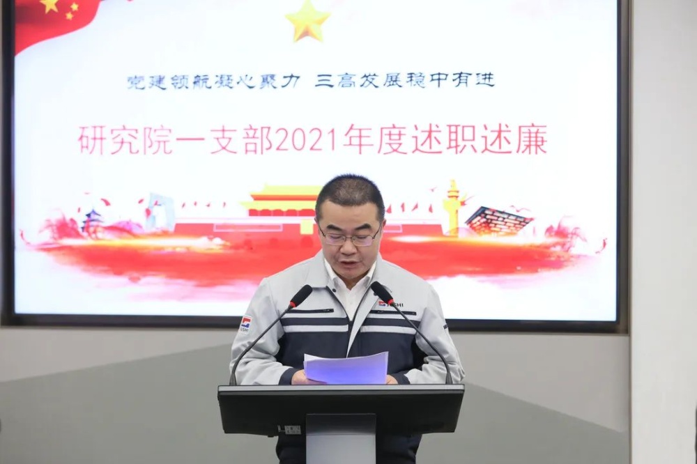 研究院一支部委員伍強,四分廠支部書記陳國衛(wèi),輔助二支部書記陳強分別作2021年度述職述廉匯報。
