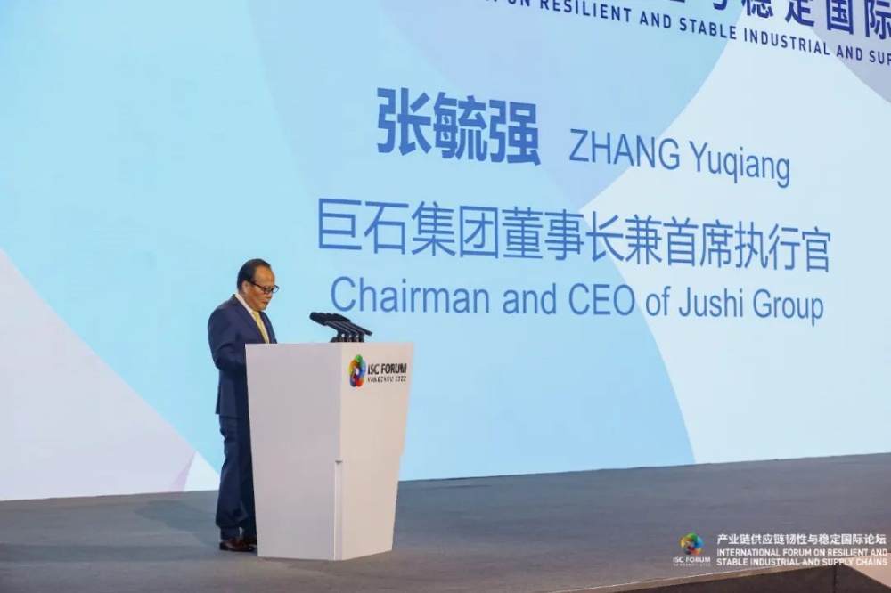 中國巨石總裁張毓強在產(chǎn)業(yè)鏈供應(yīng)鏈韌性與穩(wěn)定國際論壇上作主題發(fā)言