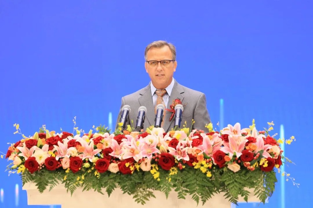 楊國明副總裁代表中國巨石對出席開幕式的各位嘉賓表示誠摯歡迎和衷心感謝。他表示, 30年來,巨石歷經四次創(chuàng)業(yè),實現(xiàn)了從跟跑、并跑到領跑的完美蝶變,登上了世界玻纖工業(yè)之巔,創(chuàng)造了不可磨滅的發(fā)展業(yè)績。本屆年會的主題是“零碳智造 共贏未來”,綠色零碳是巨石“十四五”及未來一段時間內傾力發(fā)展的方向。今年開工建設的淮安玻纖零碳智造基地是中國巨石全球第六大生產基地、全球首個玻纖零碳智造基地,打響了玻纖行業(yè)綠色低碳發(fā)展的第一槍,開辟了中國巨石新發(fā)展階段的新賽道,開啟了玻纖行業(yè)深刻變革的里程碑。
