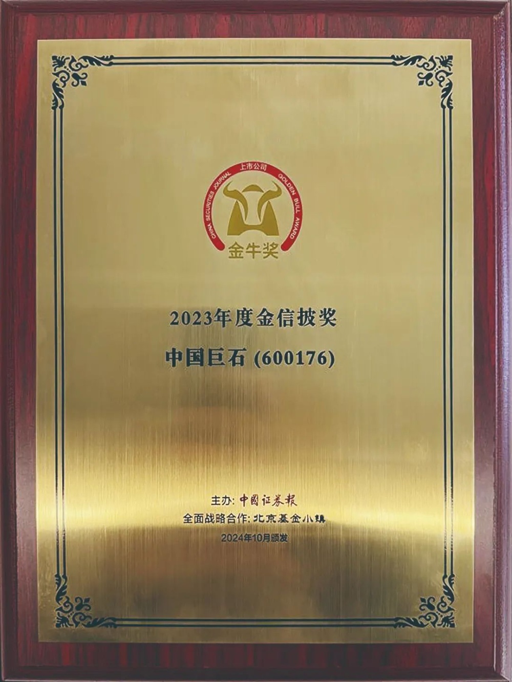 2024上市公司高質(zhì)量發(fā)展論壇暨第二十六屆上市公司金牛獎頒獎典禮在江蘇南通舉行。中國巨石憑借在信息披露、投資者關(guān)系管理等方面的優(yōu)異表現(xiàn),榮獲上市公司金牛獎“金信披獎”,體現(xiàn)了資本市場和權(quán)威機構(gòu)對公司信息披露、合規(guī)治理、投資者關(guān)系管理等方面工作的認(rèn)可與肯定。
