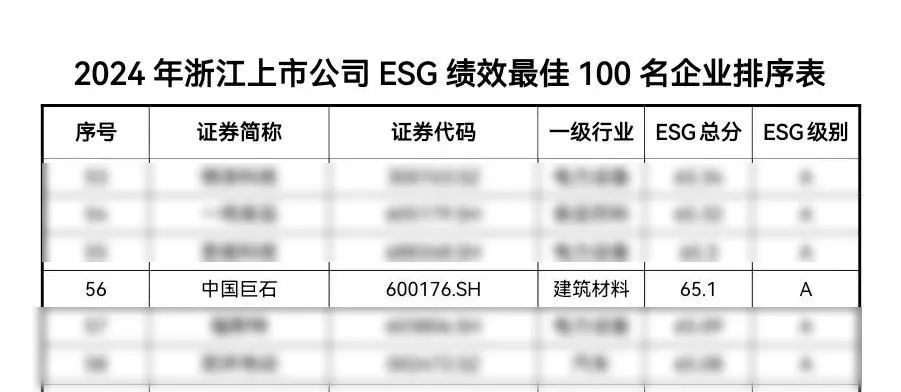 《證券時報》發(fā)布“2024中國上市公司ESG百強”榜單,中國巨石榜上有名。