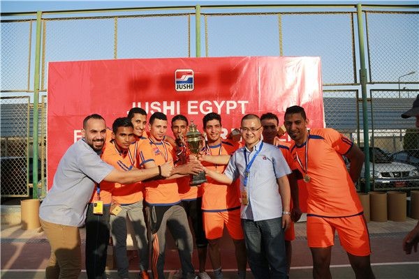 足球是埃及員工最熱愛的運動,為了尊重當(dāng)?shù)貑T工的文化和愛好,巨石埃及公司于4月18日—4月24日隆重舉辦第五屆春季足球比賽。通過初賽和半決賽的比拼,決賽在拉絲車間隊和行政聯(lián)隊中舉行,最終拉絲車間以4:1的大比分順利拿下四連冠。