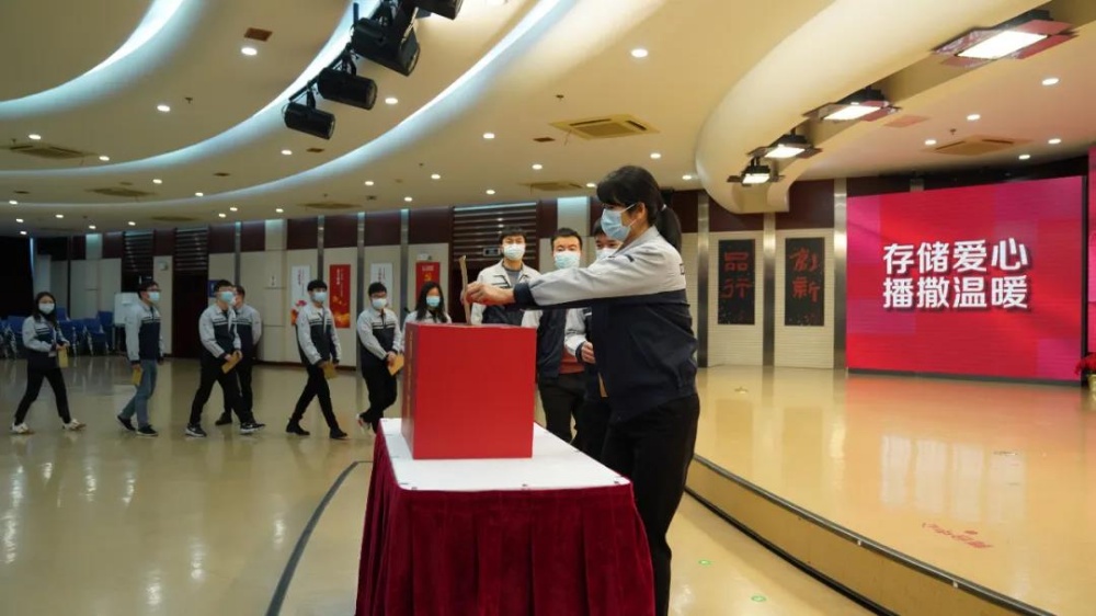活動現(xiàn)場,公司高管,行政、供銷、研究院分工會組成的愛心隊伍秩序井然地將愛心善款投入捐款箱。