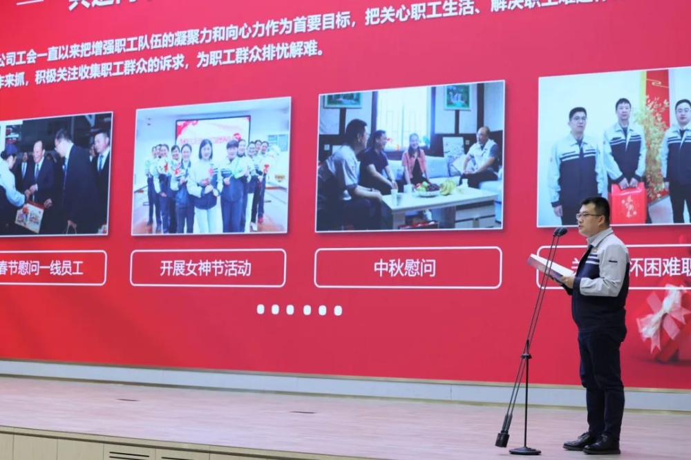中國巨石行政管理總監(jiān)、工會(huì)副主席廖信林回顧總結(jié)了公司2023年的愛心、暖心為民服務(wù)和社會(huì)公益工作情況。