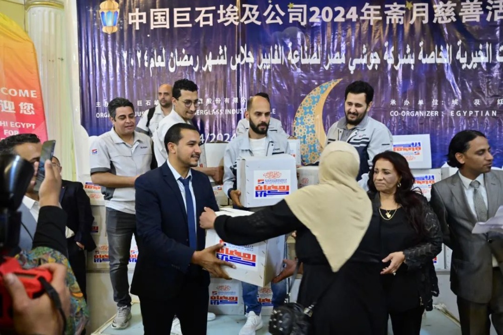 在法尤姆省中國駐埃及大使館、埃及中國商會聯(lián)合舉辦的齋月慈善活動現(xiàn)場,巨石埃及公司為貧困群體踴躍捐資,展現(xiàn)了中資企業(yè)積極融入和回饋埃及社會的良好意愿,彰顯了中埃兩國人民肩并肩的友好情誼。