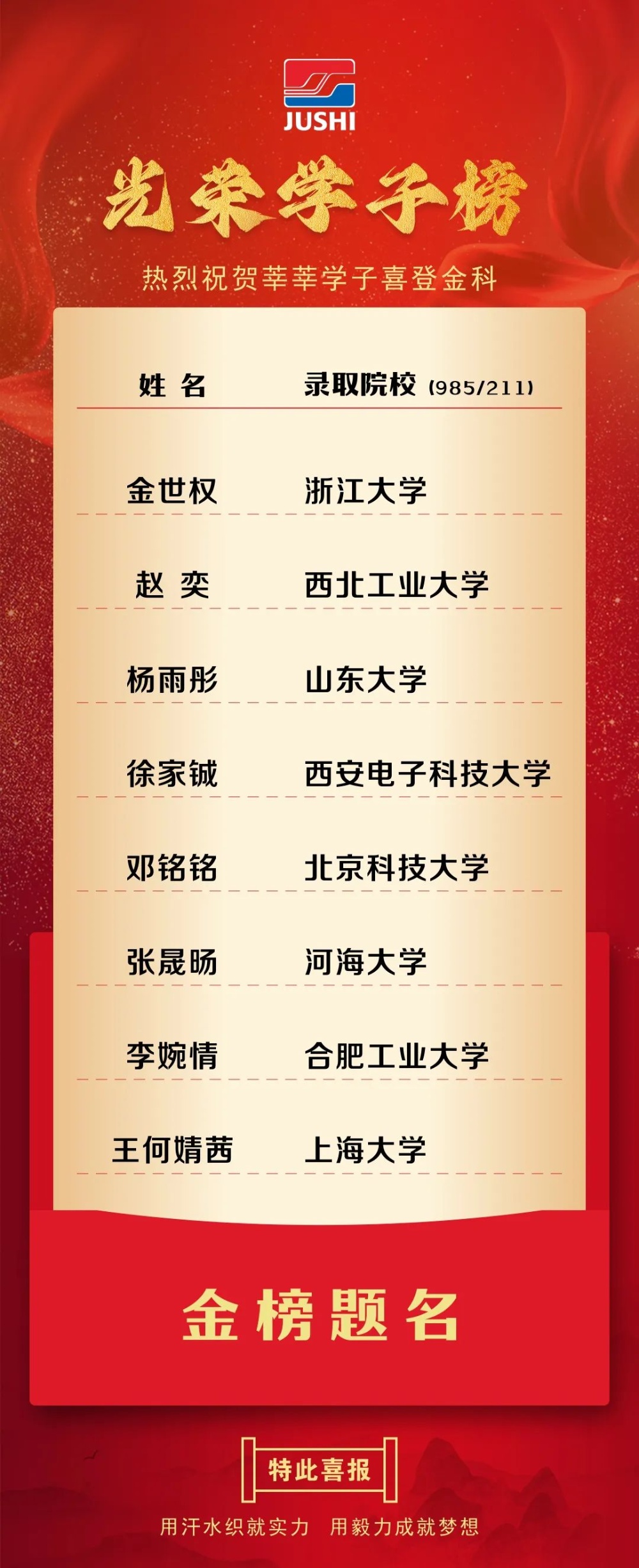 青春向遠,未來可期。巨石希望廣大學(xué)子們把大學(xué)階段作為人生新的起點,樹立遠大理想,常懷感恩之心,學(xué)好新知識、掌握新本領(lǐng),早日成長為堪當(dāng)重任的棟梁之才,也期待學(xué)子們學(xué)成歸來有機會加入巨石大家庭,沿著父輩們的奮斗足跡一起建設(shè)巨石。
