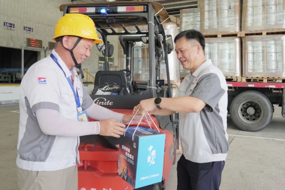 同時,巨石也將這片清涼的“綠蔭”延伸到了相關方?;窗擦闾贾悄苤圃旎丶毤喩a(chǎn)線奠基以來,項目建設現(xiàn)場如火如荼,公司的承包商為項目的推進全力以赴,而保障他們的防暑工作也是公司的責任所在。為此,巨石淮安組織開展了為期3天的送清涼活動,將一碗碗冰鎮(zhèn)綠豆湯送到他們手中?!霸谶@酷熱天氣里,還能喝到冰鎮(zhèn)綠豆湯,巨石把我們當自家人,這份情誼,銘記在心!”一位工作人員激動地說。