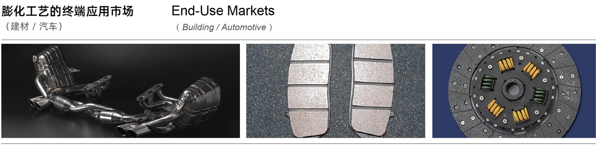 752 | 膨化效果良好,樹脂吸附能力強(qiáng),與樹脂相容性好,制品機(jī)械強(qiáng)度高 Good expansion effect, strong resin adsorption capacity, good compatibility with resin, high mechanical strength of products | 汽車摩擦片、消音器 Automobile friction plate, muffler | ![]() |
