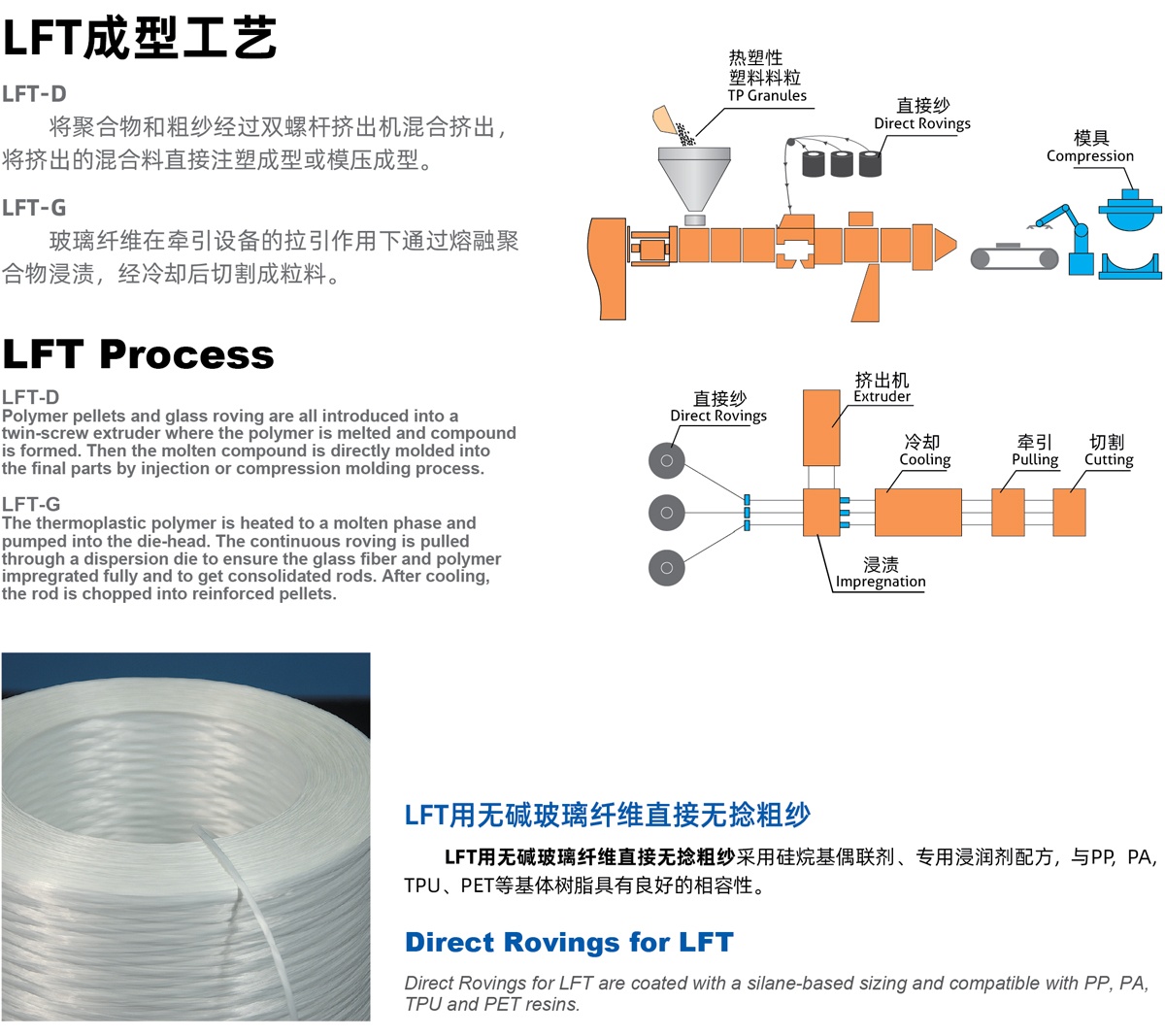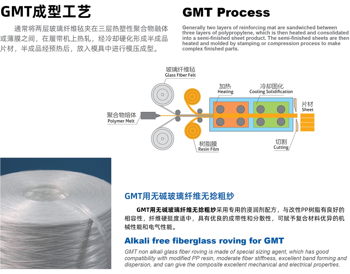 522 | GMT-RD用合股紗,短切性能好 Assembled roving for GMT-RD, excellent choppability |